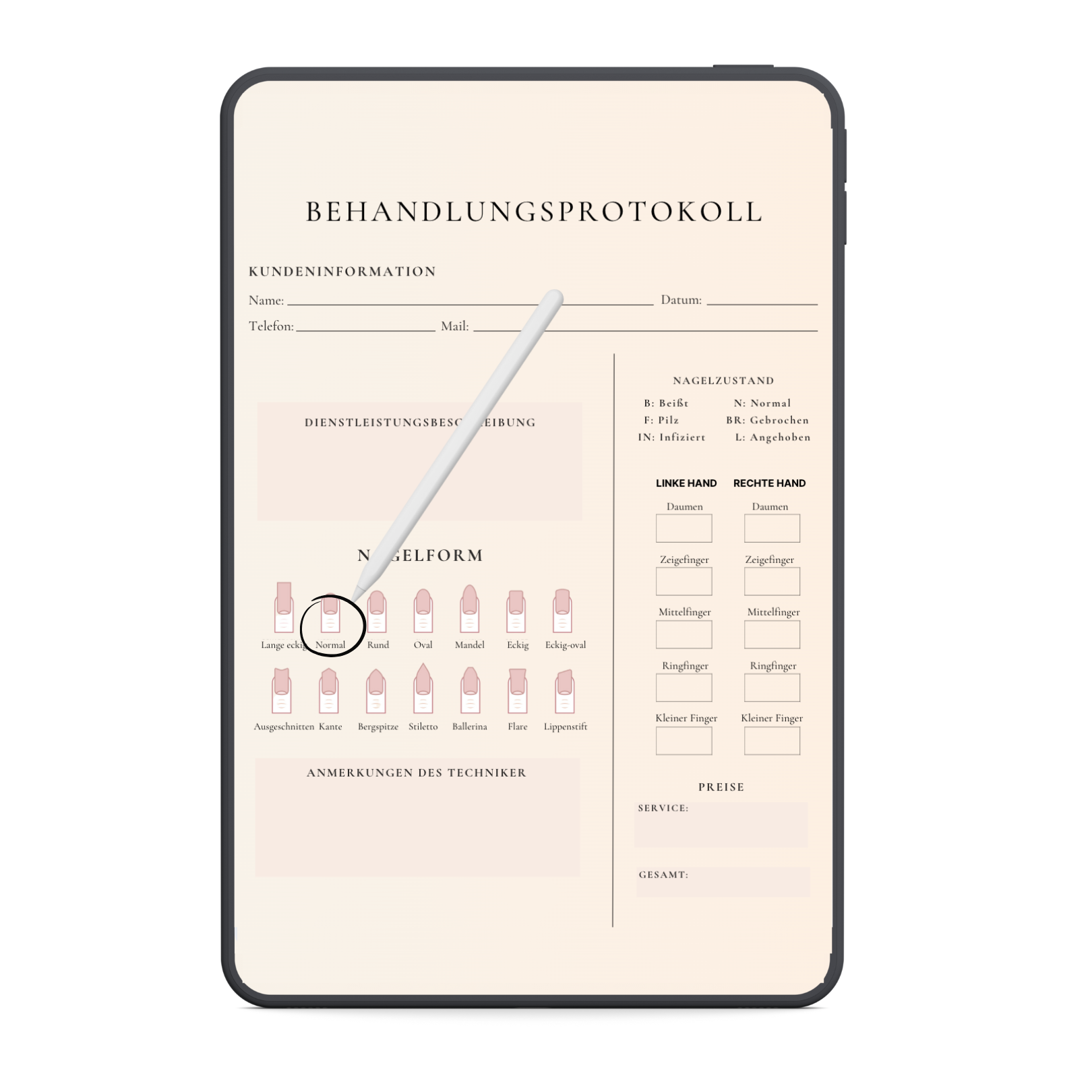 Nageltechnik Digitales Formularpaket